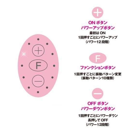 リズミカルな振動を楽しみたい方は真ん中のFスイッチ! バラエティに富んだ【10種類の振動パターン】を楽しめます。