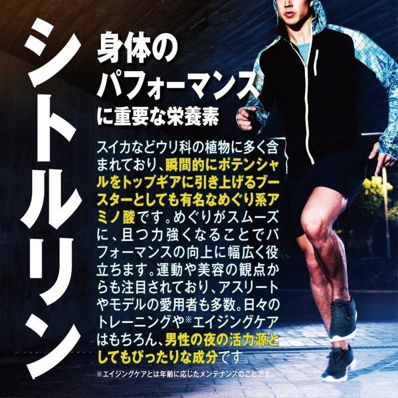 L−シトルリン(国内製造)、デキストリン、L−オルニチン塩酸塩、海蛇末、サソリ末、コブラ末、酵母(亜鉛含有)、ムクナ抽出物、スッポンエキス/ アルギニン、HPMC、クエン酸、ステアリン酸カルシウム、アスパラギン酸Na、タウリン(抽出物)、カフェイン(抽出物)、ビタミンC、ビタミンE、 ニコチン酸アミド、パントテン酸カルシウム、ビタミンB1、ビタミンB6、ビタミンB2、ビタミンA、葉酸、ビタミンD、ビタミンB12