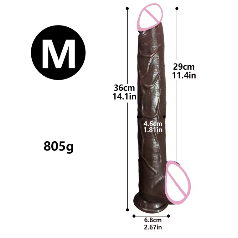 全長360mm、直径46mmという存在感あふれるサイズ感に加え、挿入部はたっぷり290mm。手にした瞬間、その迫力と重み(810g)が全身に期待感を走らせます。底部には直径68mmの強力吸盤を搭載し、床や壁など平らな面にしっかり固定可能。両手を自由に使ったプレイや、さまざまな体位での使用が思いのままです。