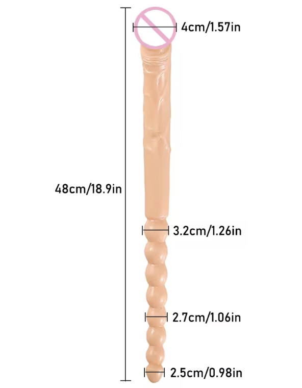 全長48cmというボリューム感、ノーマル側の最大径4cm、アナル側の最大径3.2cmというサイズは、どちらも充分な刺激を約束します。
