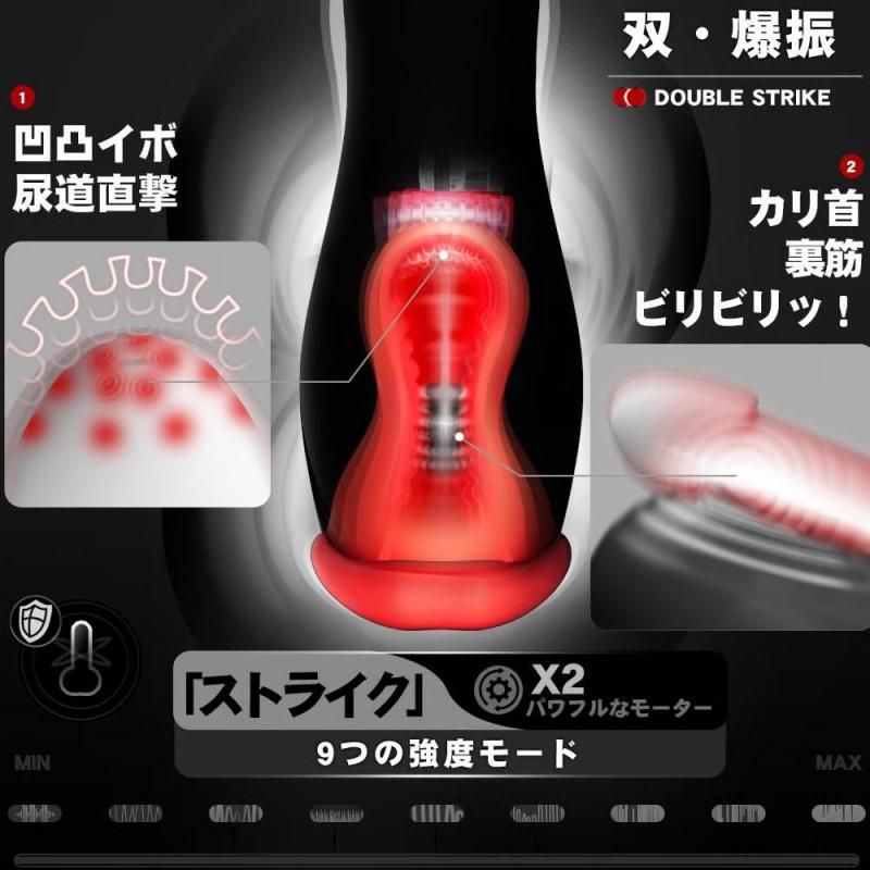 さらに、9種類の激震ローターがカリ裏から先端まで全方位を痺れる快感で刺激し、刺激の質を高めます。