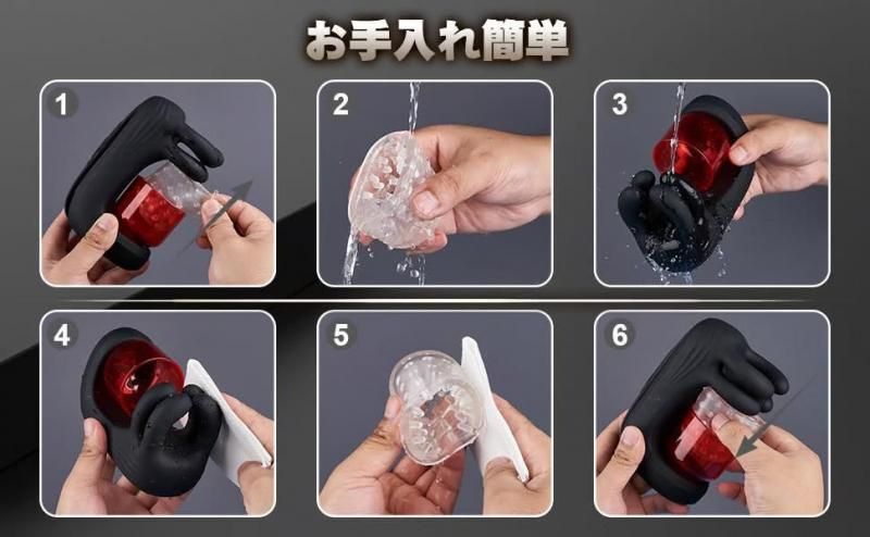 4本の指が竿をガッチリ締め付け、先端は360度舐め回し責め。9種回転×9種振動で、深く濃いW快感を一度に味わえることが特長です。