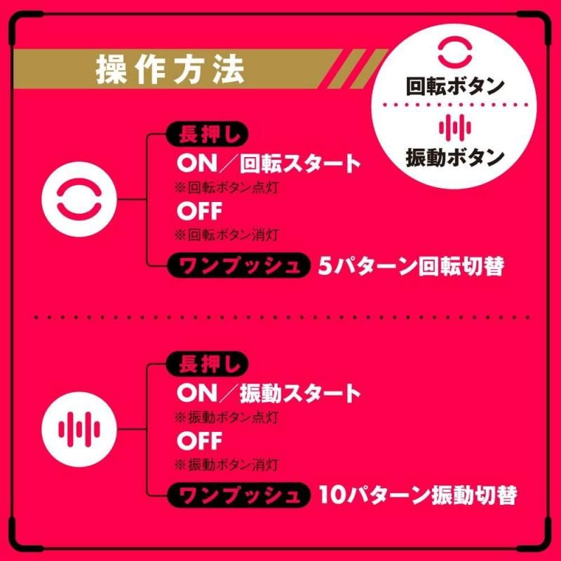 10パターン振動×5パターン回転の全50バリエーションで気分に合わせて快感も変更が可能。