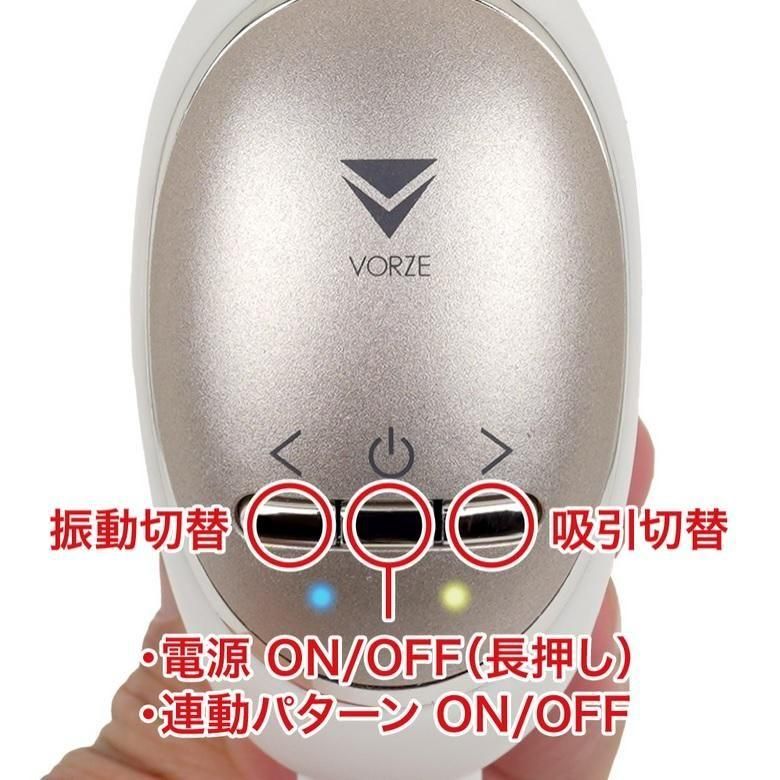 電源ボタン長押しで電源を入れ、左右ボタンで振動・吸引の操作をします。