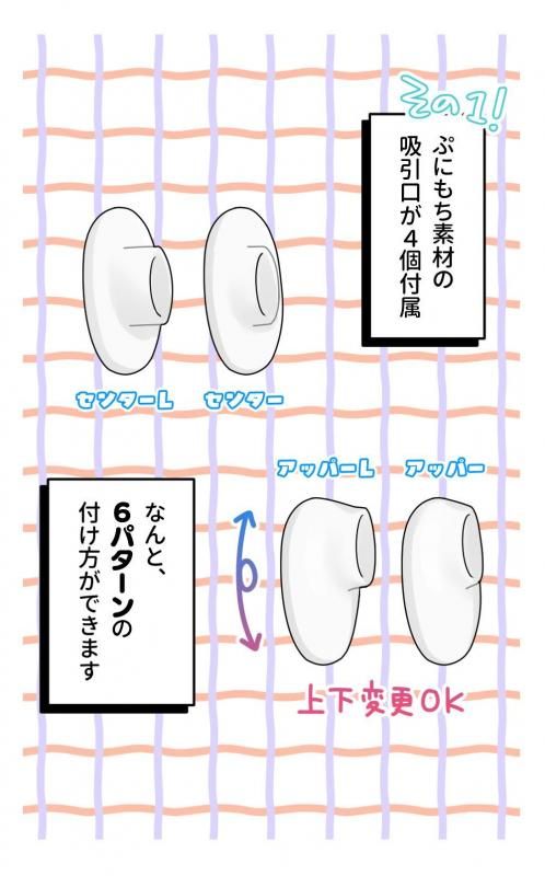 ヴァギナとクリトリスの位置や挿入深度は個人差があり、オモルフィのノズルアタッチメントの交換によって当て位置や挿入深度の調整ができます。
