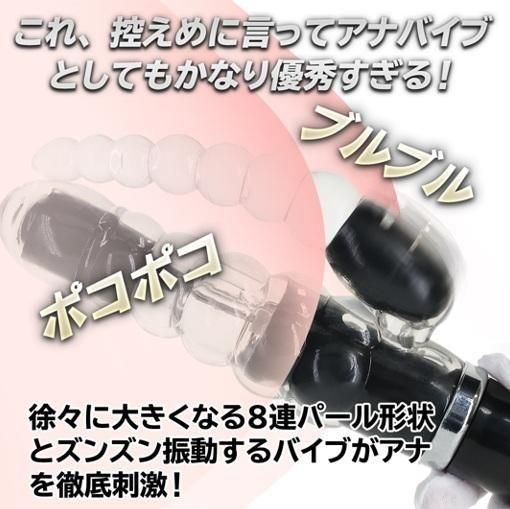 徐々に大きくなる8連パール形状とズンズンと振動するバイブがアナルを徹底的に刺激します。