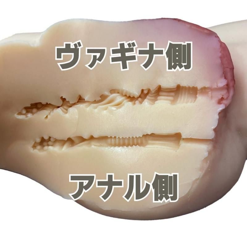 内部は二穴構造で、ヴァギナホールは、入口から繊細なイボが絡みつき、中盤にかけてうねるヒダが摩擦と吸いつきを演出。奥にはリング状の収縮ゾーンを配置し、挿入のたびに強弱のある刺激を体感できます。