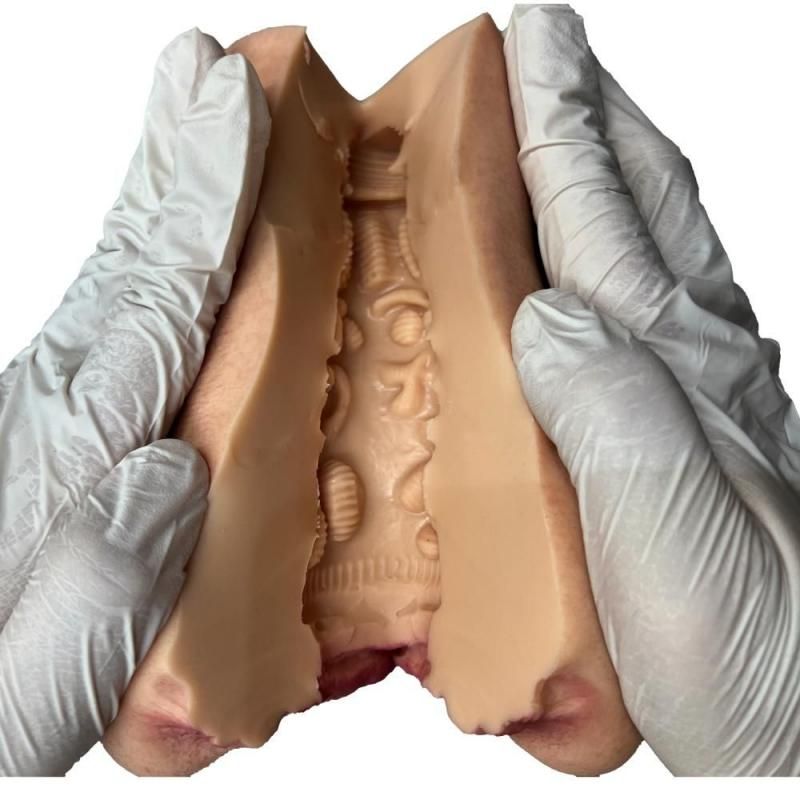 最大の魅力は、採用されている 高品質シリコン素材。表面はしっとりとした肌触りで、指先に吸いつくような感覚を持ち、押し込めば柔らかく沈み込みながらも芯のある弾力を返してくれます。手に取った瞬間から伝わる「上質さ」が、通常のオナホでは味わえない所有欲と高級感を満たしてくれます。オナホならではの油感もシリコン製なのでかなり控えめになっています。