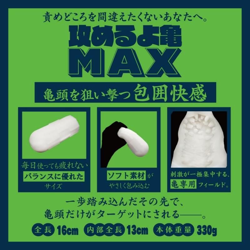 【攻めるよ亀MAX】は、最先端のZONEを狙い撃ちにする、攻めの快感特化型のオナホです。