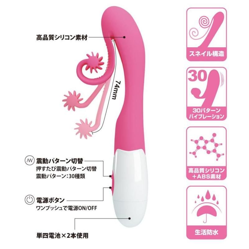 機能:振動30パターン、スネイル構造、生活防水