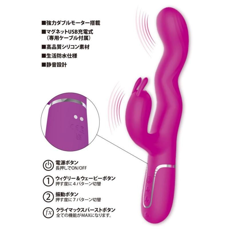 4パターンくねくねウェービングと7パターンダブルモーター強力震動が楽しめます。