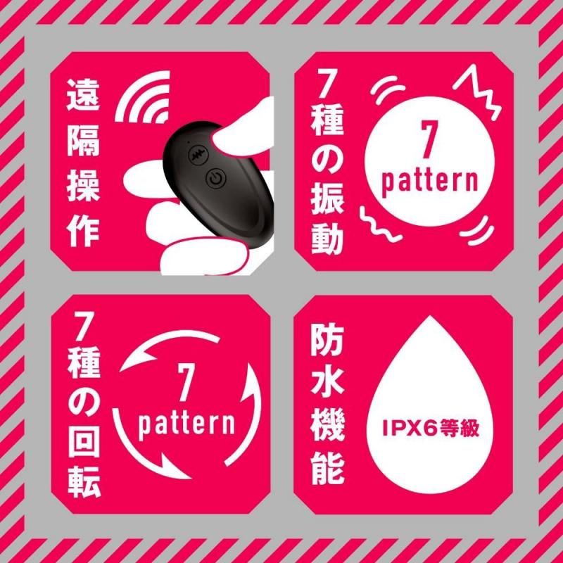 機能:振動7パターン、回転7パターン、遠隔操作、IPX6防水