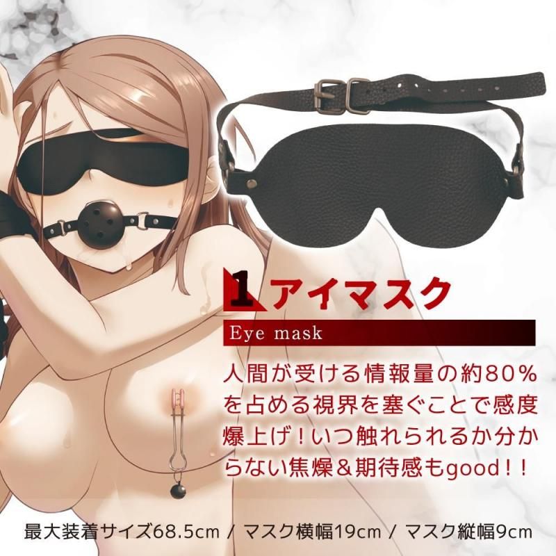 付属品:アイマスク、ボールギャグ、手枷、乳首クリップ、羽ぼうき