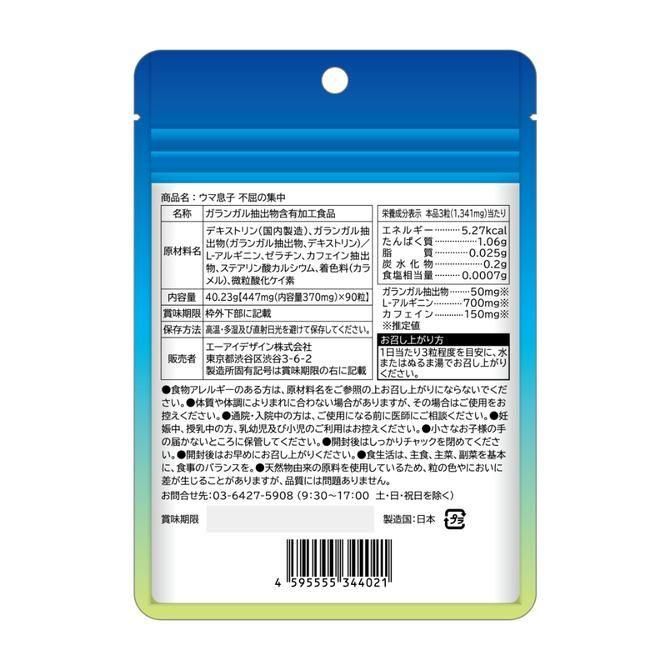 成分:デキストリン(国内製造)、ガランガル抽出物(ガランガル抽出物、デキストリン)/L-アルギニン、ゼラチン、カフェイン抽出物、ステアリン酸カルシウム、着色料(カラメル)、微粒酸化ケイ素