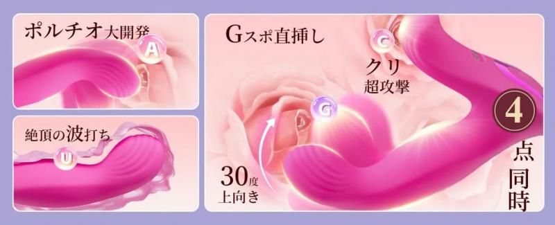 A・G・C・Uの4ポイントを同時に刺激し、様々な女性の体型に合うような設計でズレにくく、装着したまま快感が続きます。