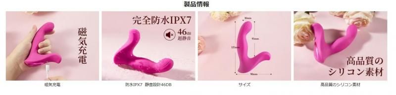 機能:振動(2000/秒)、振動10パターン、タップ10パターン、アプリ連携、IPX7完全防水(丸洗い可/浸水不可)、静音
