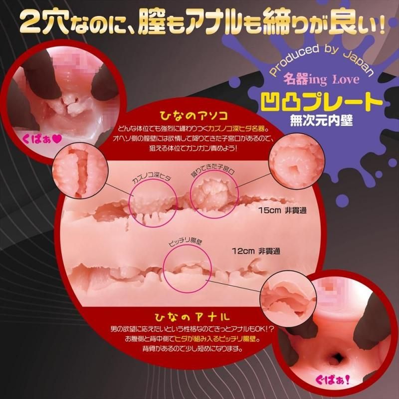 アソコは強烈に纏わりつく数の子深ヒダ名器となり、アナル側はヒダが組みいるピッチリ腸壁感を演出します。